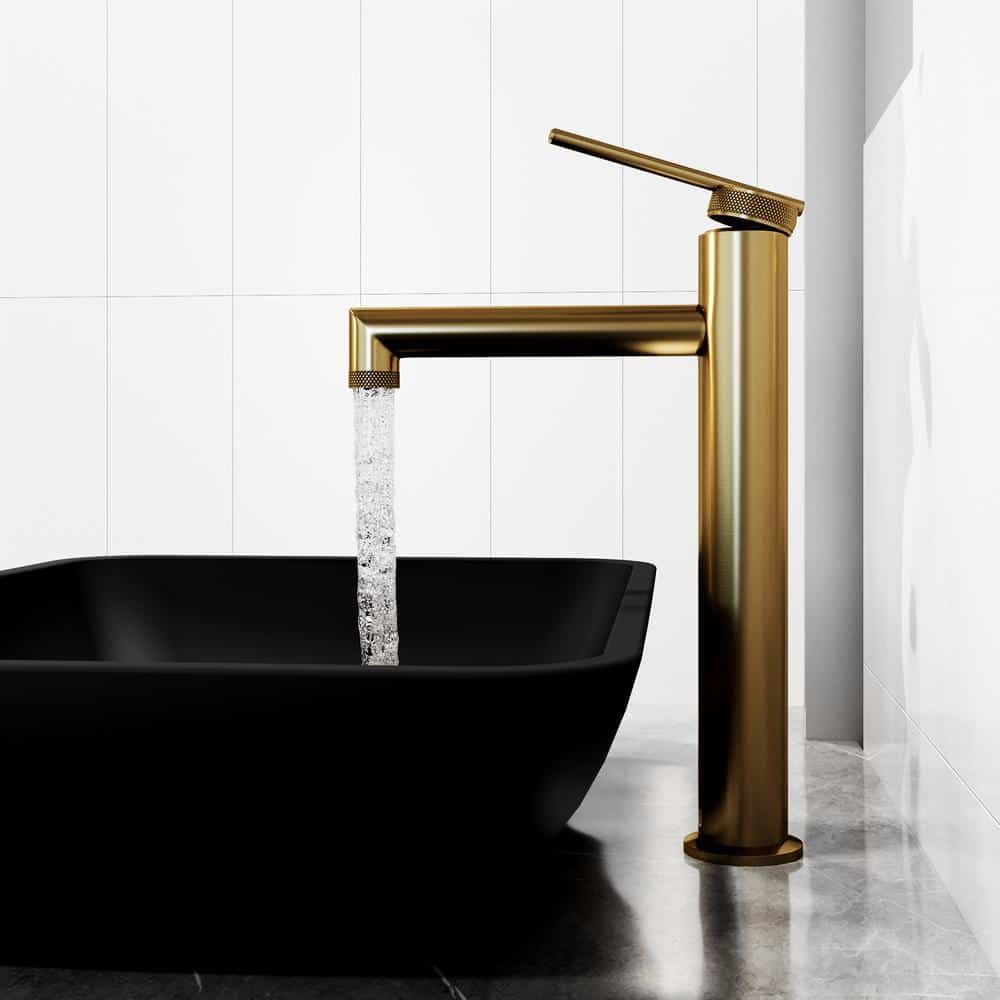 A modern yet timeless design is elevated by innovative engineering to create an exceptional vessel bathroom faucet from The Sterling Collection by VIGO. Taking inspiration from the elegance of jewelry and medallions, the Sterling faucet features a sleek single-handle with diamond knurling while its high arc spout provides plenty of space for hand washing. Its solid brass construction ensures long-lasting durability while VIGO’s premium 7-layer brushed nickel finish resists rust, tarnish and corrosion. A simple 5-step DIY installation process makes it easy for you to elevate your bath space.
