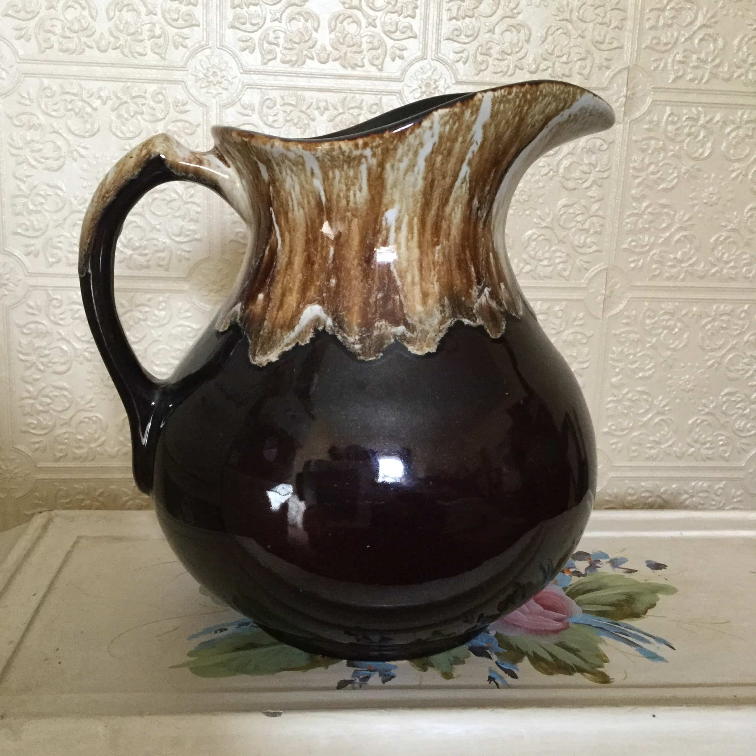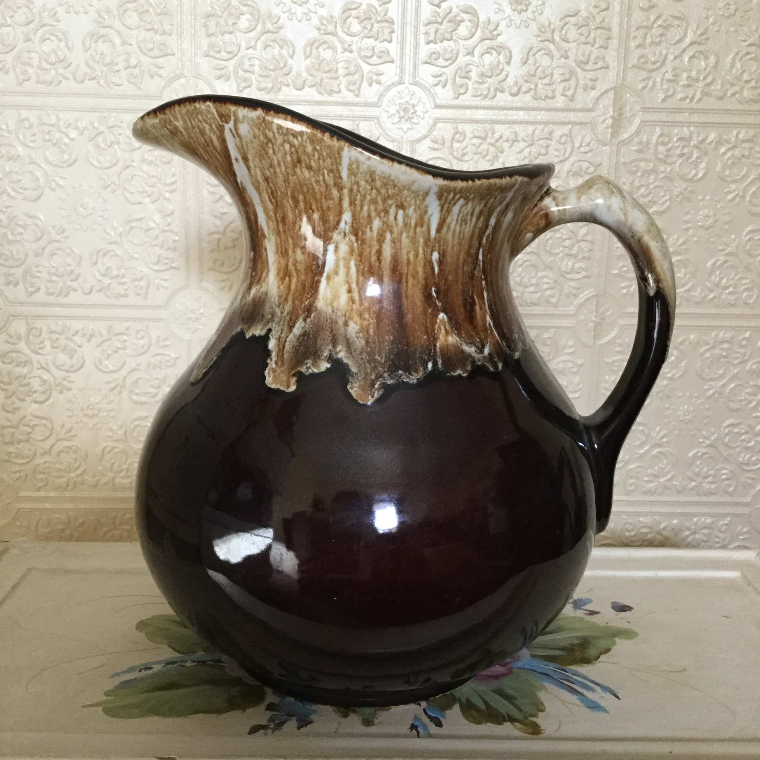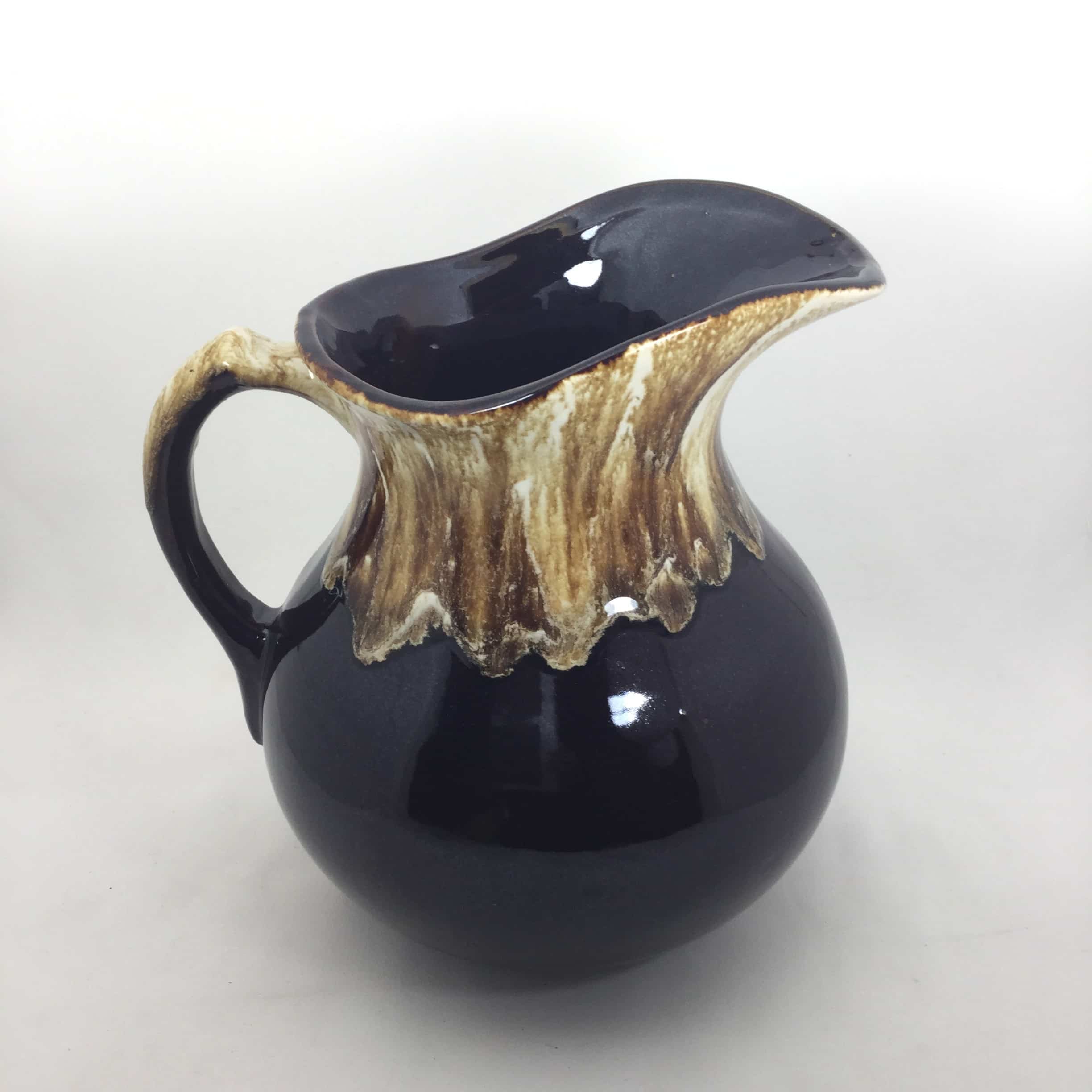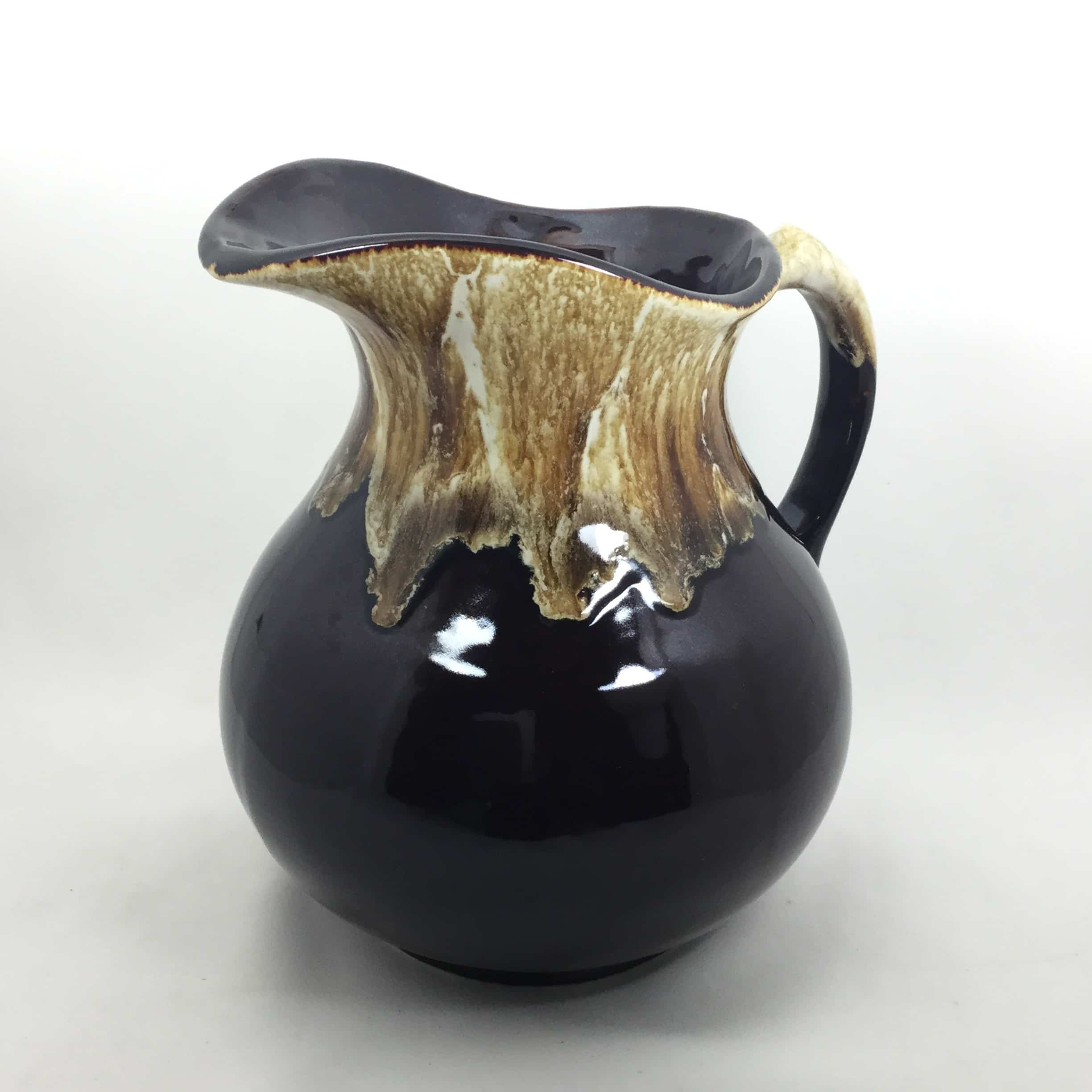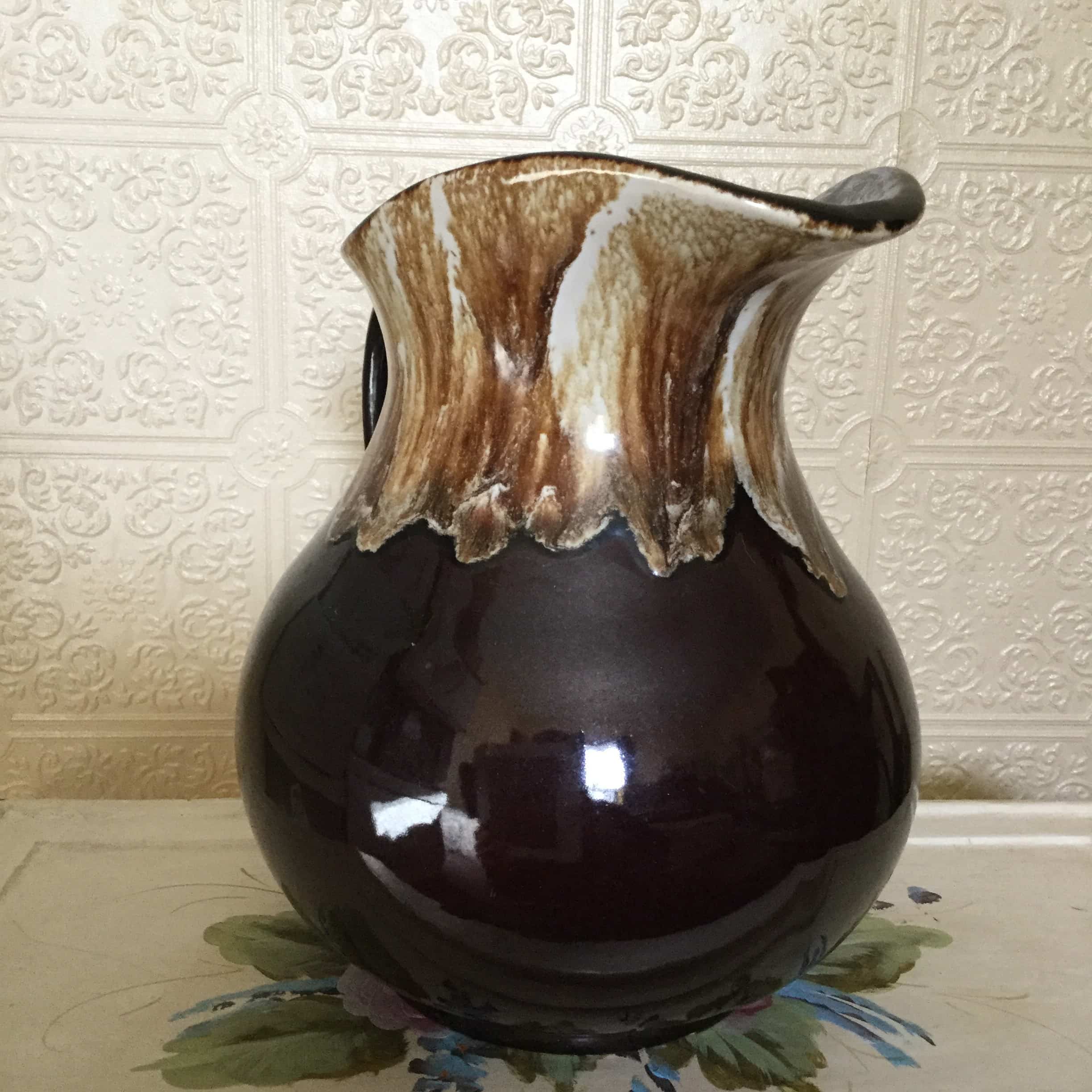 Vintage Original Pottery Class Brown Drip Glaze Water Pitcher