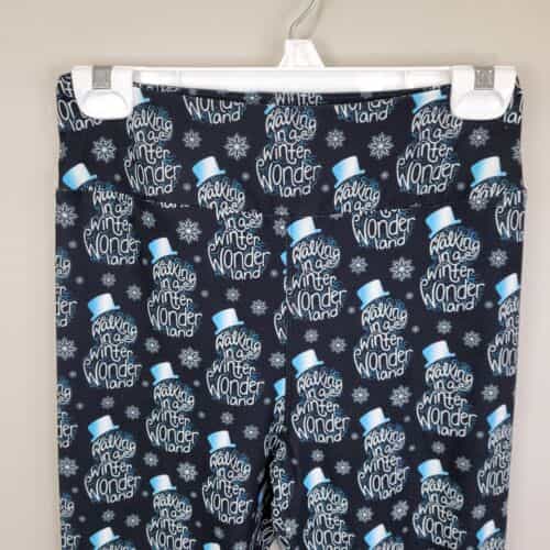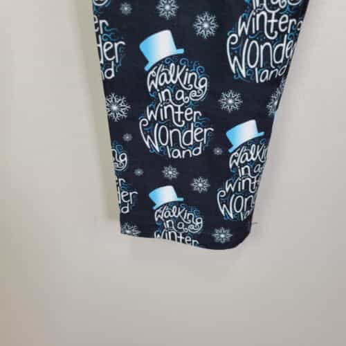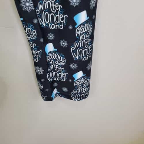 Soft and comfy pair of leggings made of polyester and spandex with a sweet winter wonderland theme print and a wide waistband!