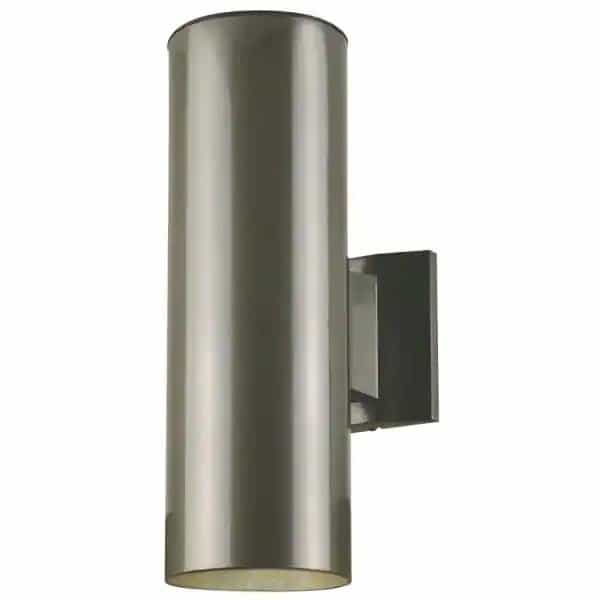 This Westinghouse outdoor wall fixture features sleek mid-century modern design, with a polished graphite finish on a steel cylinder. This fixture also features a clean rectangular back plate that contrasts nicely with the rounded body of the fixture. Install this modern wall fixture in your front or back entryway, by your garage door, deck area, patio, balcony or side entrance. Wherever you mount it, you will enjoy the fixture’s diverted, two-directional light and sleek lines. The fixture is 15 in. x 5 in. (H x W) and it extends 8-1/4 in. from the wall. It is 7-1/2 in. H from the center of the outlet box. The back plate measures 5 in. x 4-1/4 in. (H x W). This Westinghouse outdoor wall fixture is UL/CUL listed for safety. It is backed by a 5-year limited warranty against defects in materials and workmanship. Product reference number 67975.