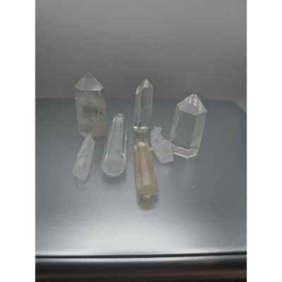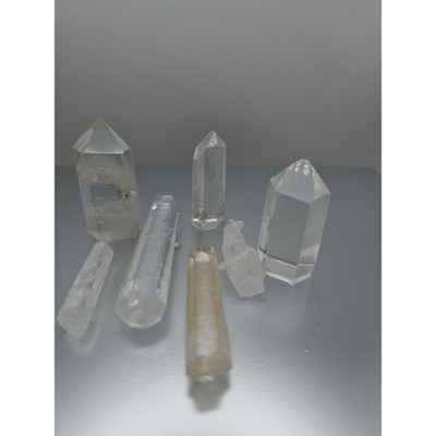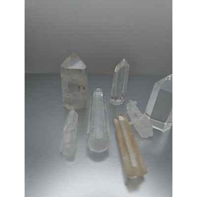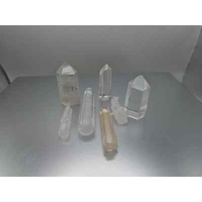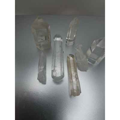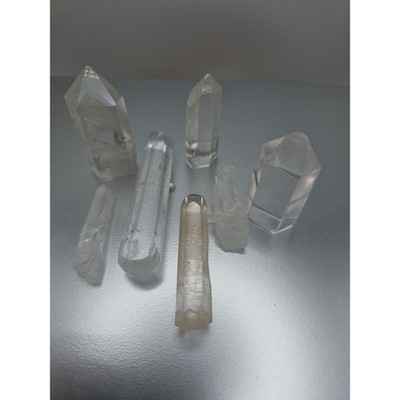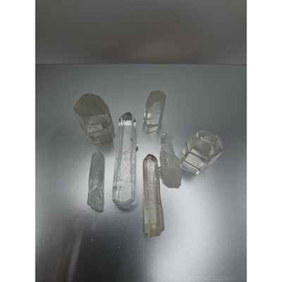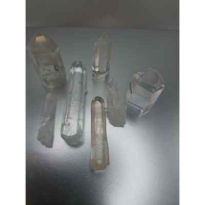 The product is a set of 7 natural white quartz crystals from Brazil. Each crystal is unique and has its own natural shape, making them ideal for collectors or those interested in rocks, fossils, and minerals. These crystals are perfect for adding a touch of beauty and elegance to any collection or display.