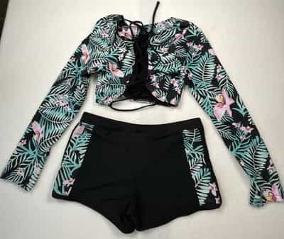 Women Two Piece Rash Guard Long Sleeve Swimsuit Swim Shirt Size L