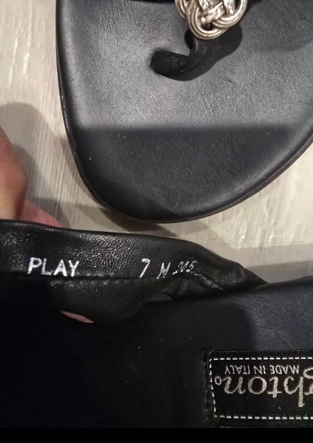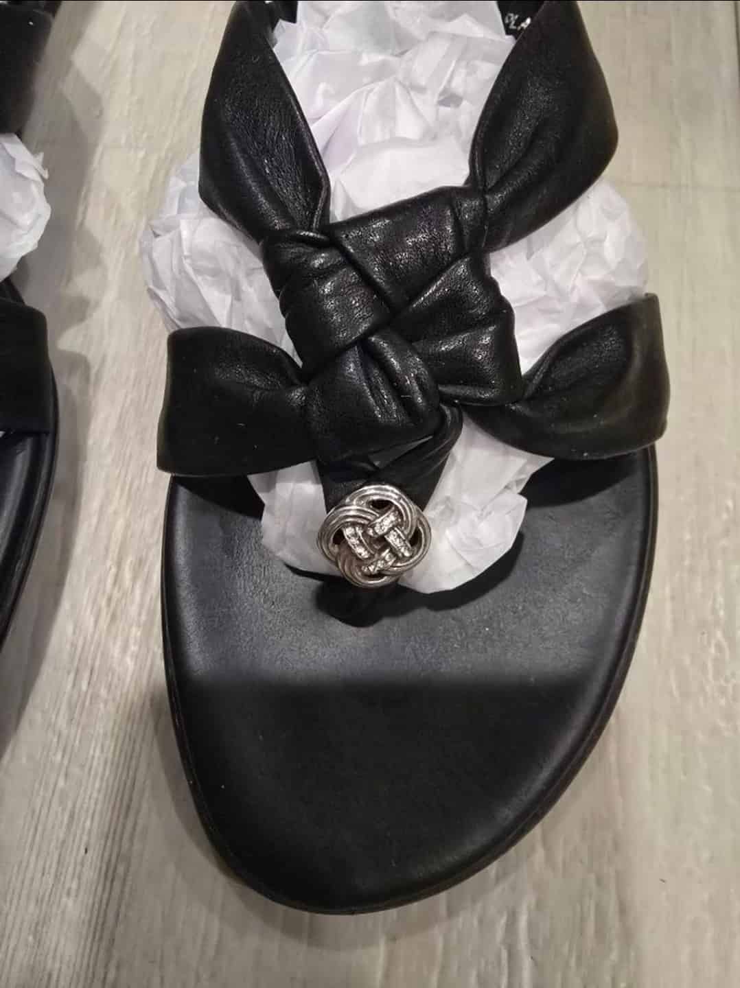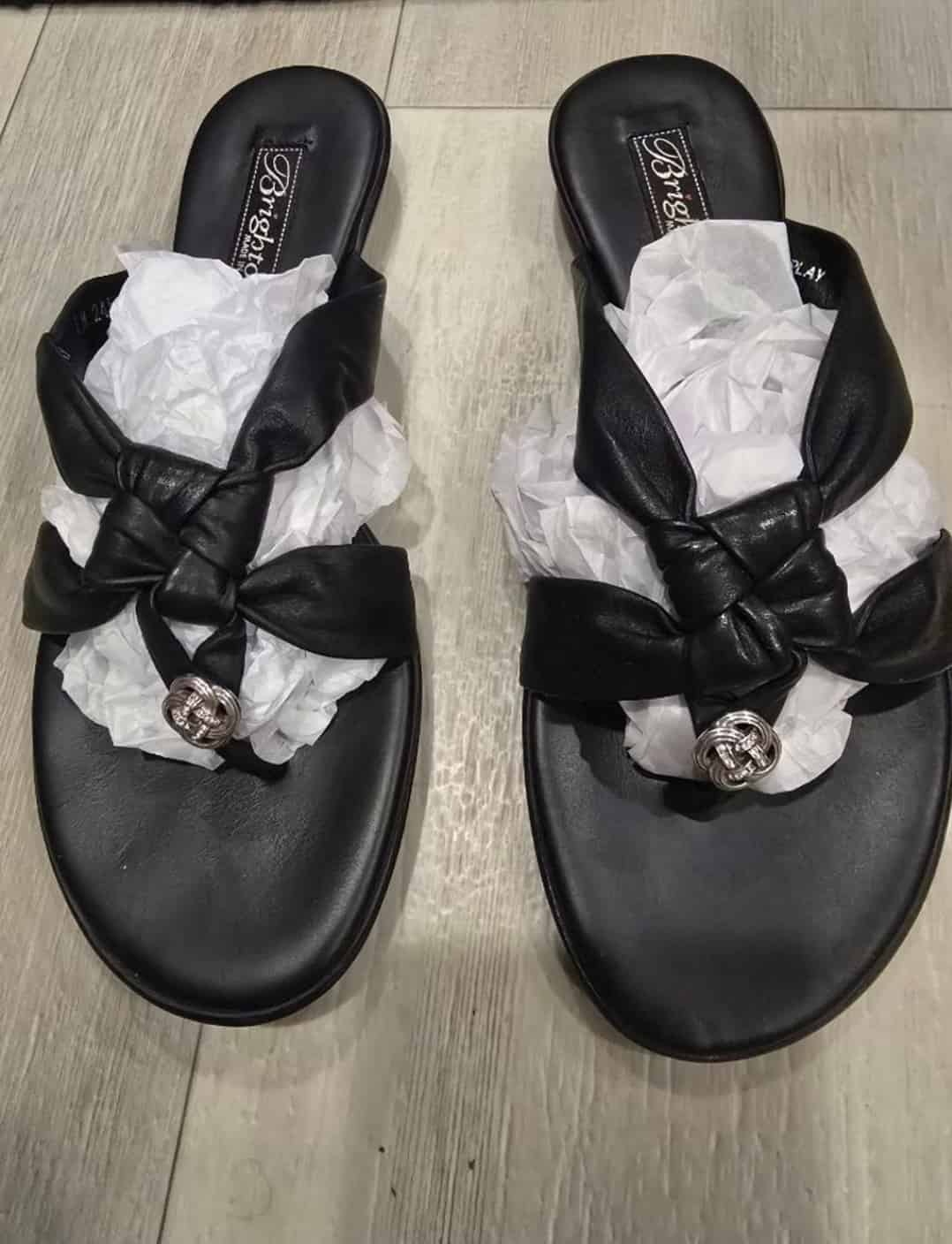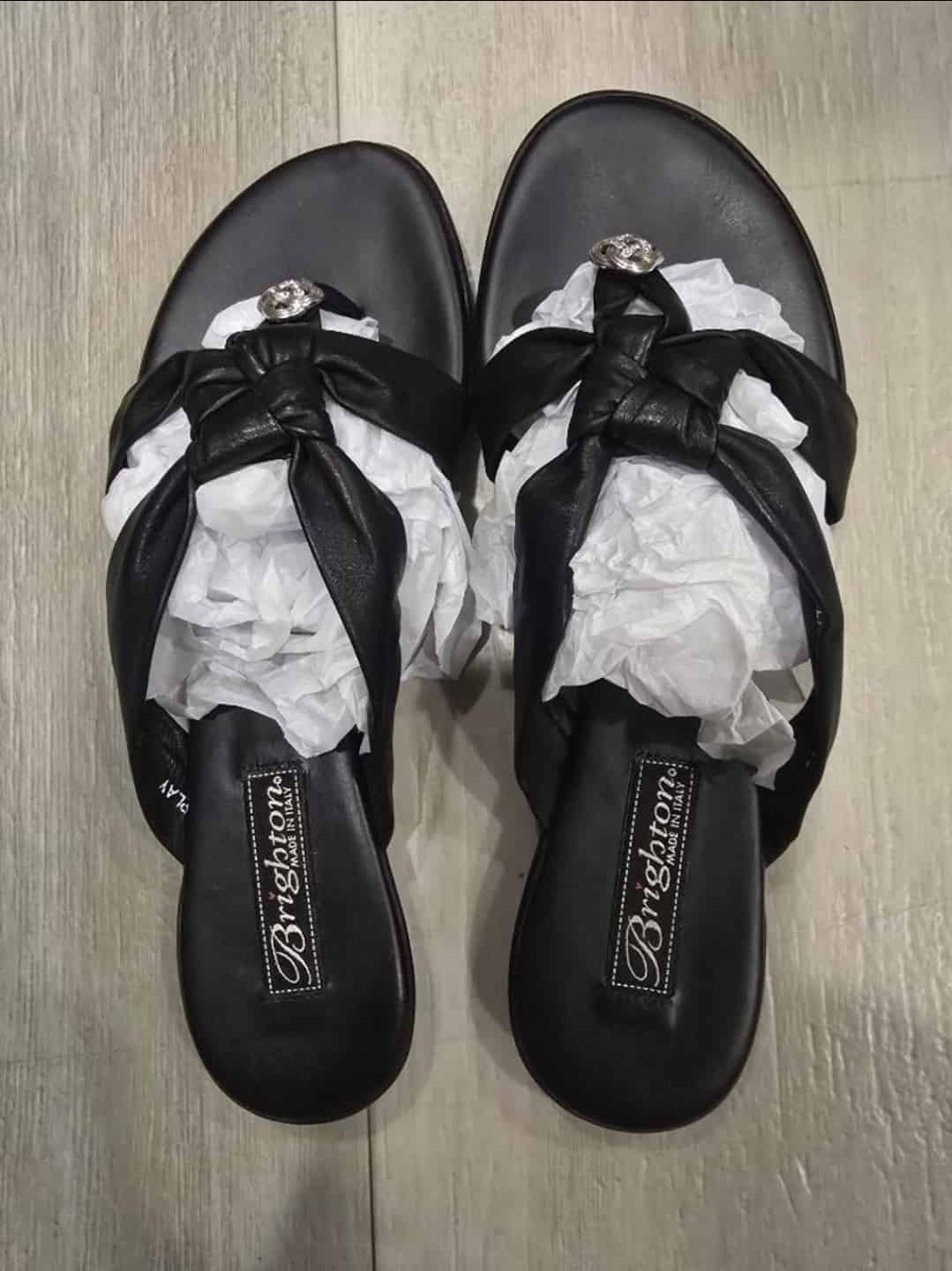 Brighton sandals, black leather thong sandals, Brighton Italy shoes, knot design sandals, embellished sandals