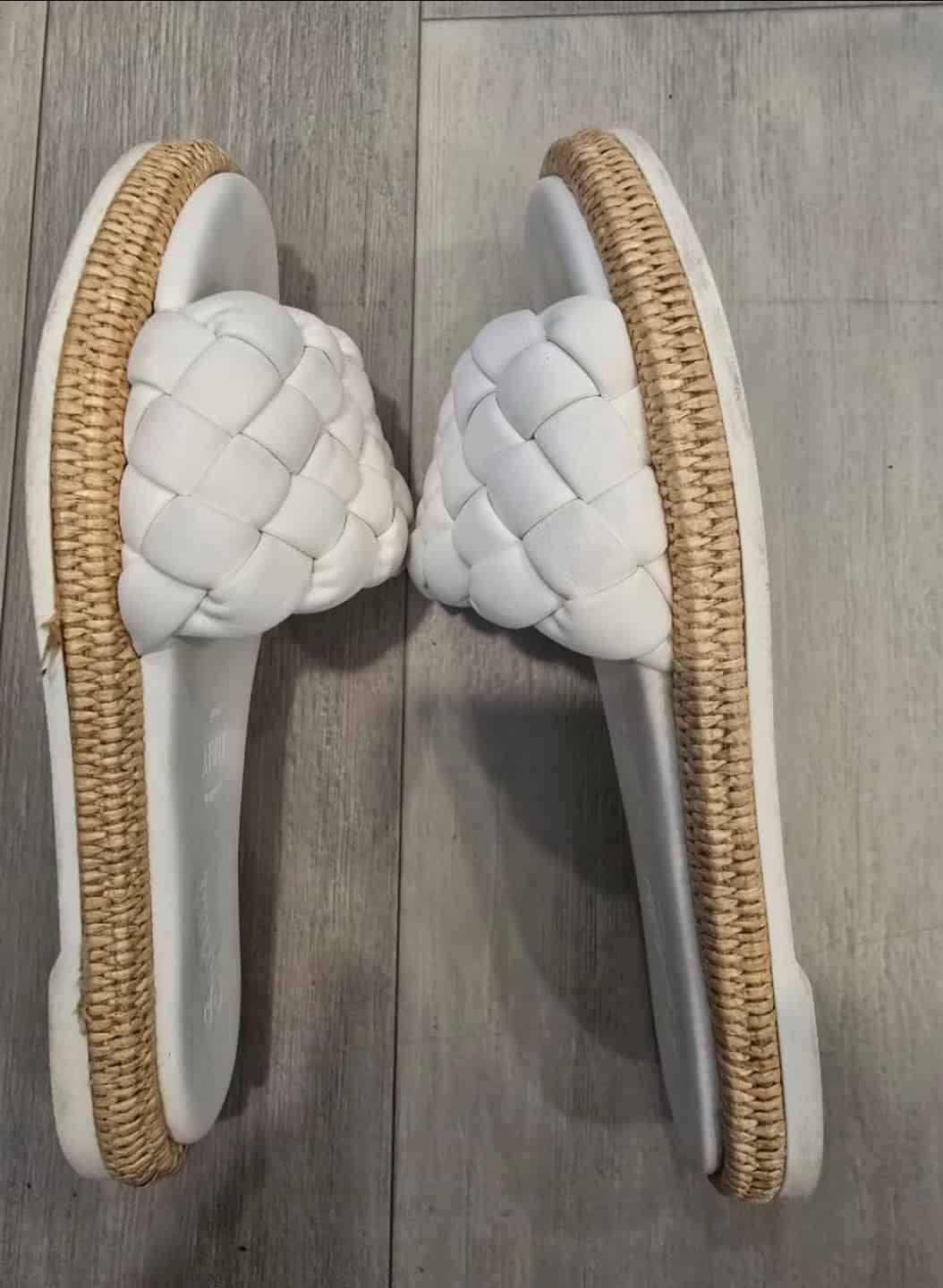 Seychelles slide sandals, white woven sandals, espadrille slide sandals, women’s size 7 slides, made in Italy sandals