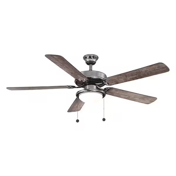 Make a room cooler with this Trice 56-in. LED ceiling fan. Great for any room in your house, it comes with five reversible blades with an espresso finish on one side and seasoned wood on the other. The multi-capacitor allows quiet operation and maximum airflow. To complete the look, it offers a frosted opal schoolhouse light and a gunmetal finish.