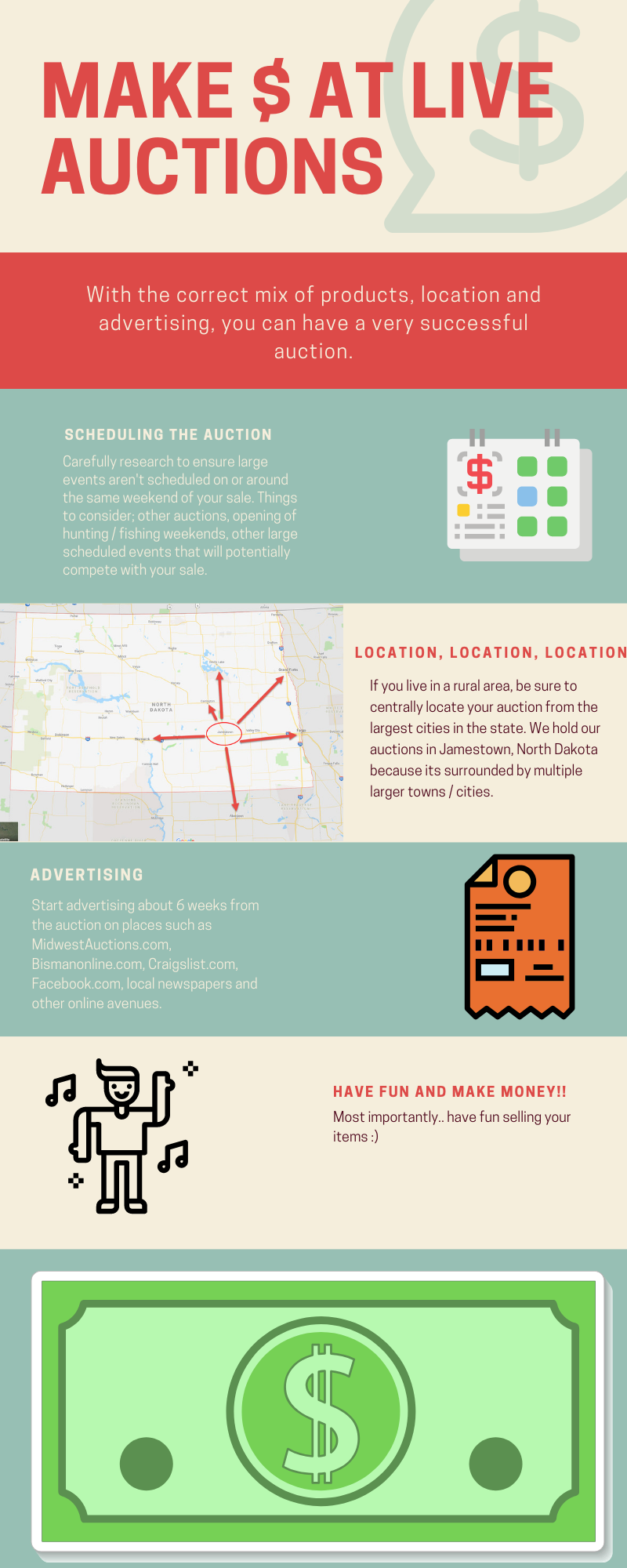 Shawn expresses the importance of centrally locating the auction in North Dakota in order to make capture interest of collectors in all major populations. He also explains how important it is to advertise on platforms such as Facebook, AuctionZip, MidwestAuctions, Craigslist and Bisman. If you choose the best date, centrally locate + add the right mix of advertising, you will draw a large crowd of serious bidders. Watch the video below to take a trip with Shawn on his March, 30th 2019 auction ventures.